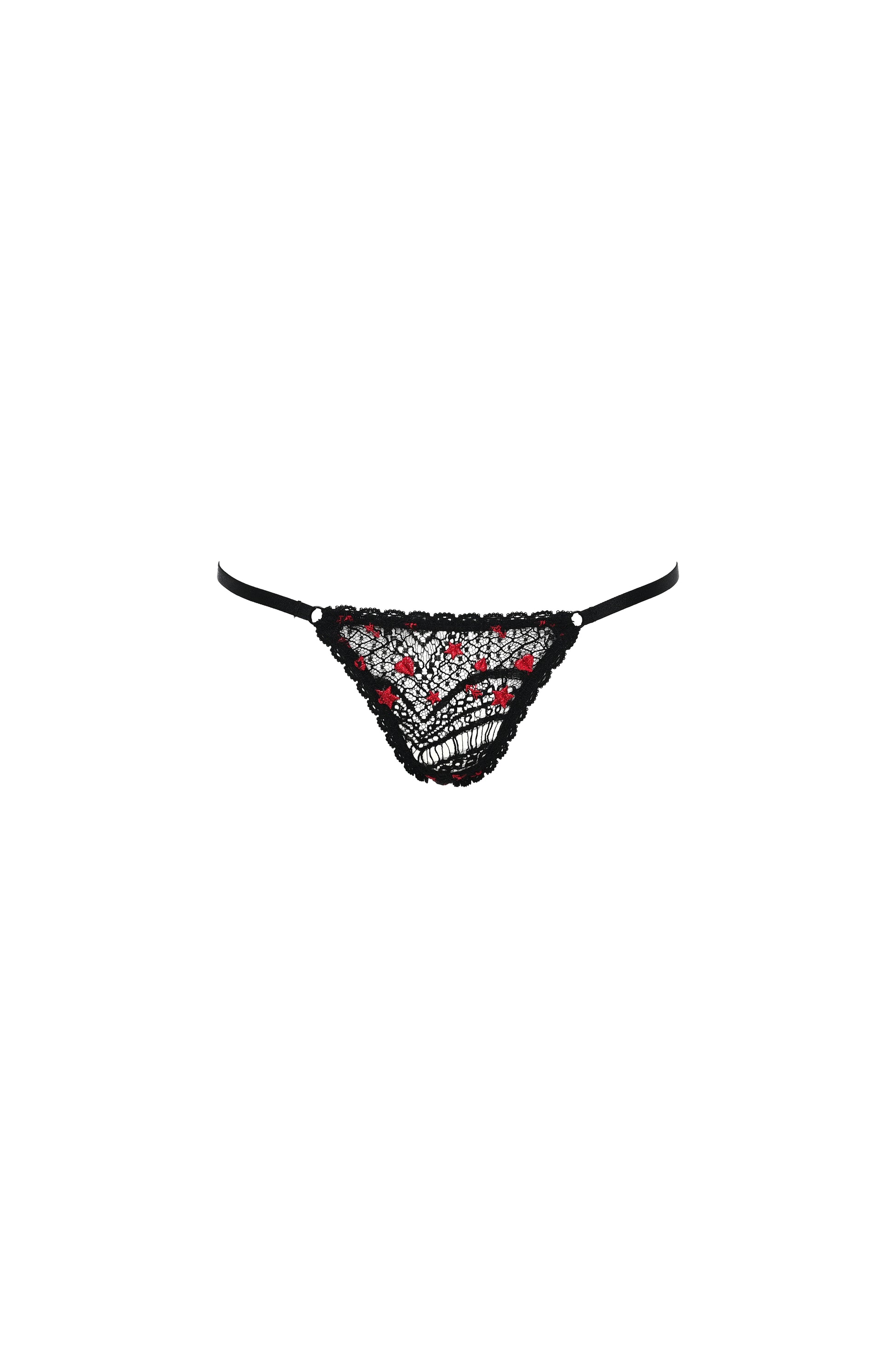 Embroidered lace with red hearts and stars.
