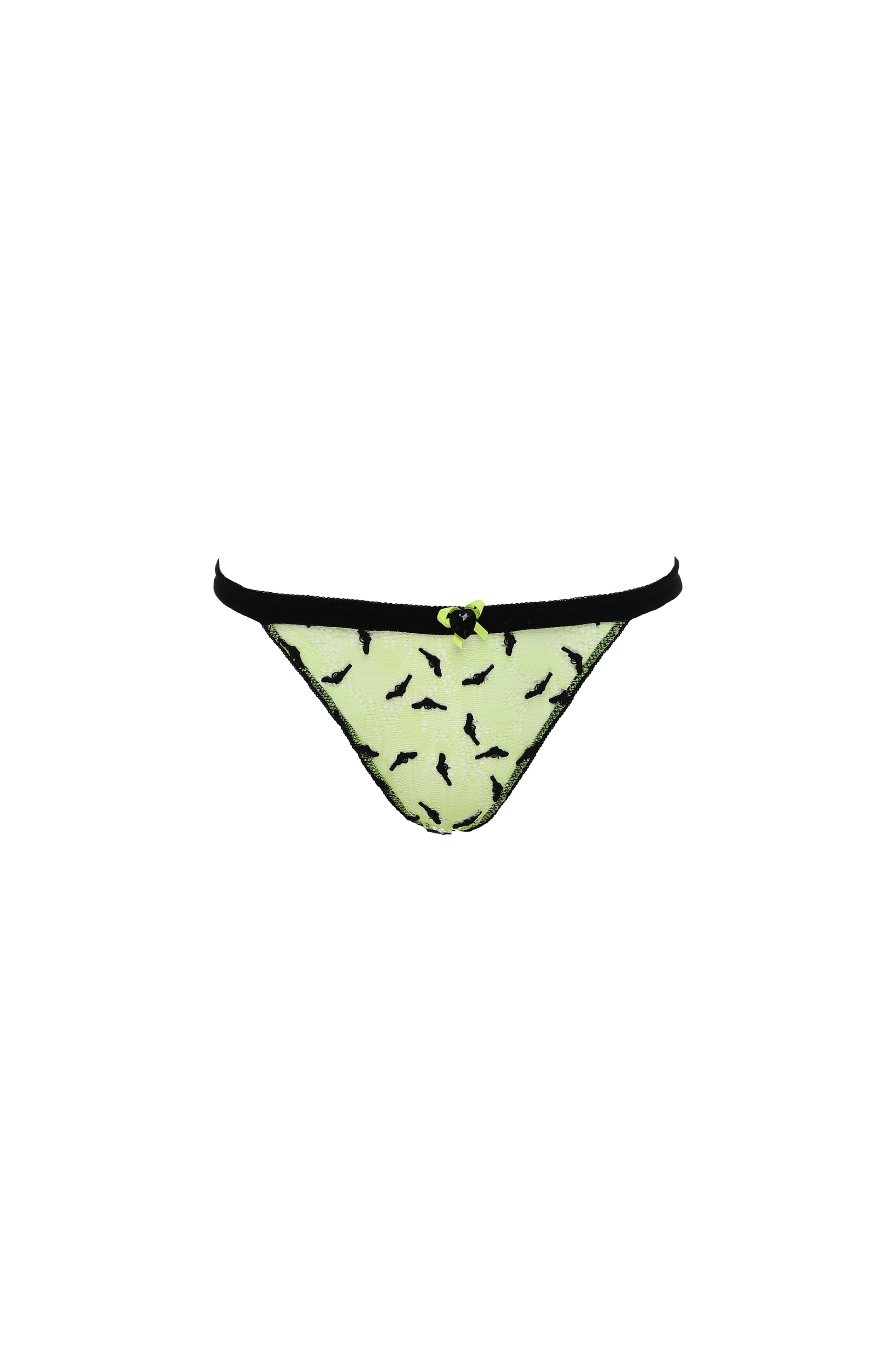 Le Dalha's gun, est un string en dentelle, brodé de petits pistolets noirs.