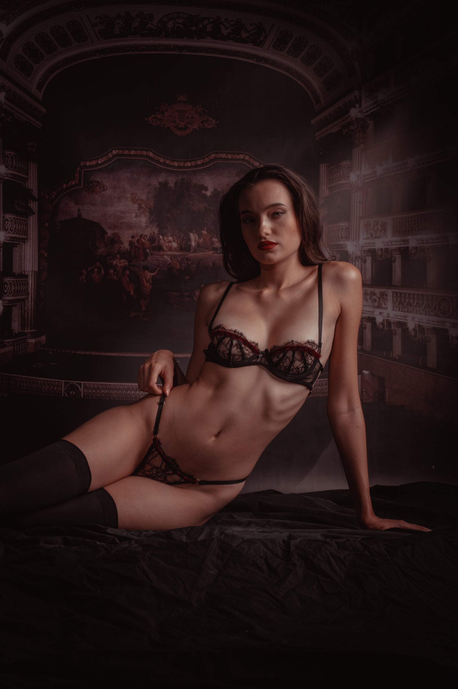 The Myriam bra is made of eco-friendly lace. It has a velvet decorative ribbon and is adjustable at the back.