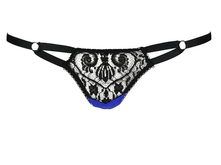 Elegant and alluring, The Castle thong is crafted from smooth blue satin that feels silky and luxurious against the skin. The design is accented with delicate lace featuring a mirror-like symmetry, creating a refined and balanced aesthetic. Minimal yet sophisticated, this piece highlights the silhouette while offering a lightweight, comfortable fit. A perfect complement to The Castle set, combining sensuality with timeless elegance.
